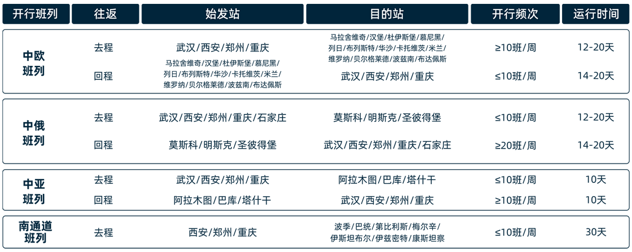 中蒙、海铁去程和东盟去回程